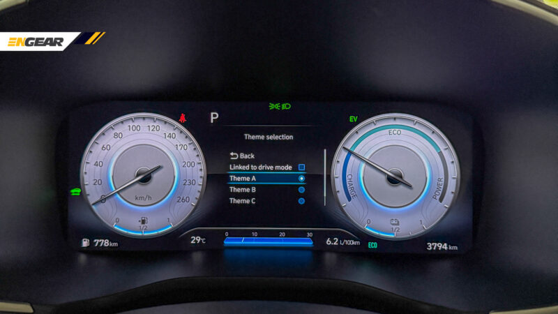 Ciri unik yang kami suka pada Hyundai Santa Fe Hybrid ini sudah pasti paparan informasi titik buta (BVM), di mana paparan titik buta sebelah kiri atau kanan akan dipaparkan pada skrin kluster digital untuk membantu membuat penukaran lorong dengan selamat.