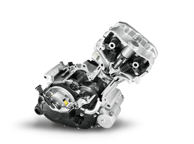 Kuasa itu disalurkan kepada roda belakang menerusi transmisi V-belt automatik.