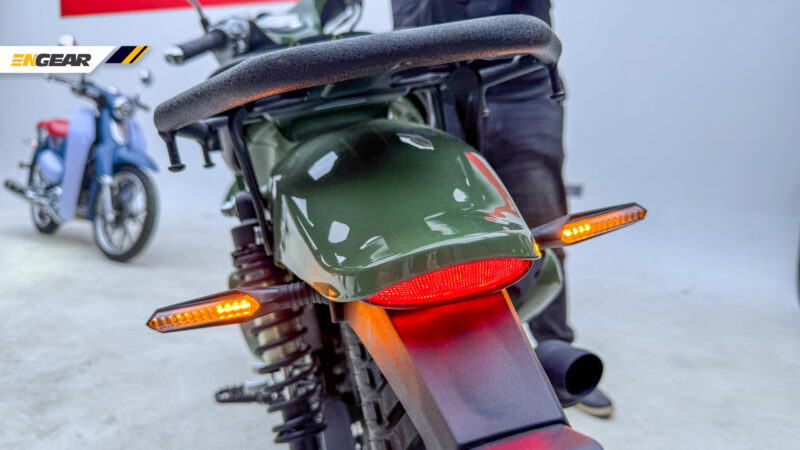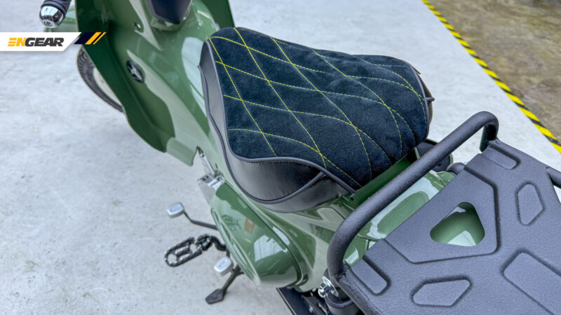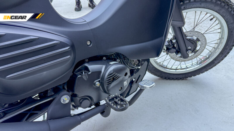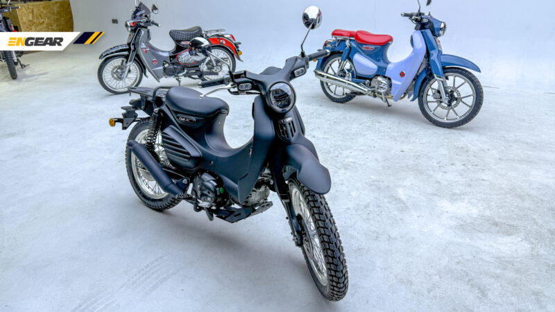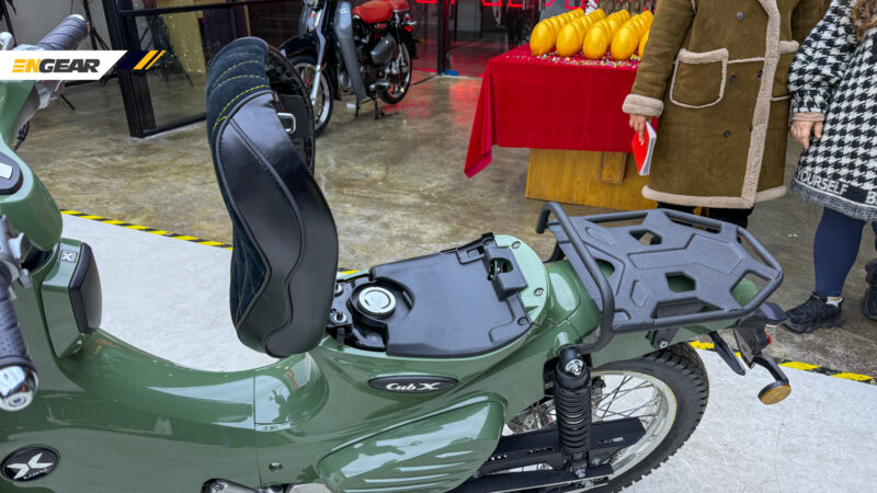 Untuk sebuah jentera cubcross, Cub X ini membawakan spesifikasi yang lebih agresif, seperti tayar off-road tanpa tiub, rim lidi 17 inci, tempat duduk tunggal balutan kulit serta rak barang menggantikan tempat duduk pembonceng.
