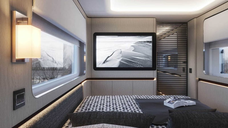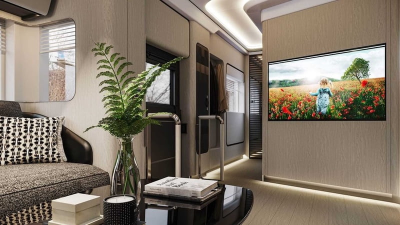 Ciri tambahan yang boleh dipilih adalah lampu ambien, lampu bacaan LED, soket USB-C, langsir berkualiti tinggi, peti sejuk, dan soket 230-volt. Dah macam dalam kereta Mercedes!