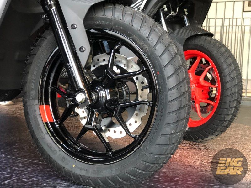 Sistem brek pula terdiri daripada cakera 220 mm di depan dan belakang namun ABS hanya tersedia untuk tayar depan. Rim yang digunakan adalah 14 inci di depan dan 13 inci di belakang, masing-masing dibaluti tayar 110/80 dan 130/70.