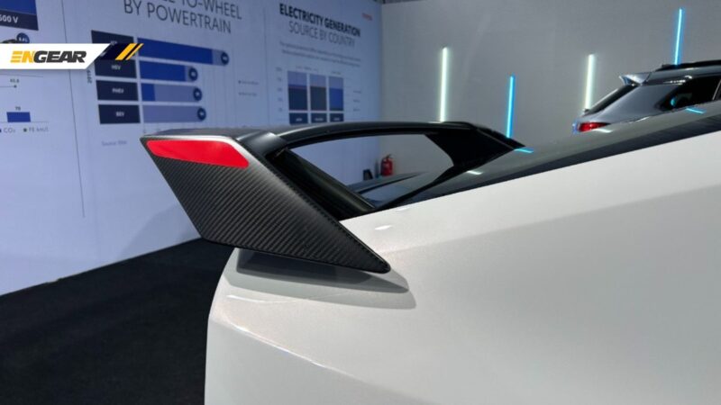 Bahagian belakang pula tampil sporty dengan spoiler bumbung berkembar dan bar lampu nipis yang merintangi pintu tailgate.