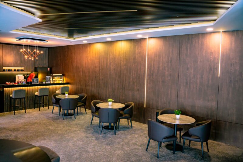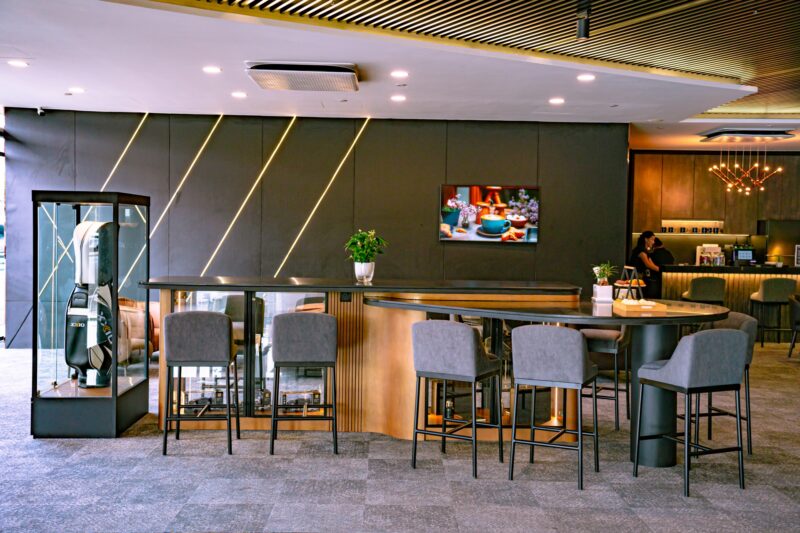 Ruang rehat pelanggan turut diserikan dengan dua konsol Nintendo, sambungan Wi-Fi percuma, serta makanan dan minuman ringan.