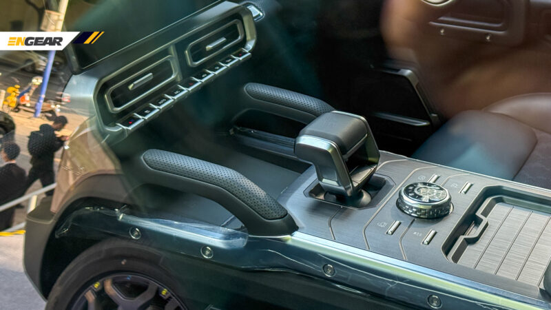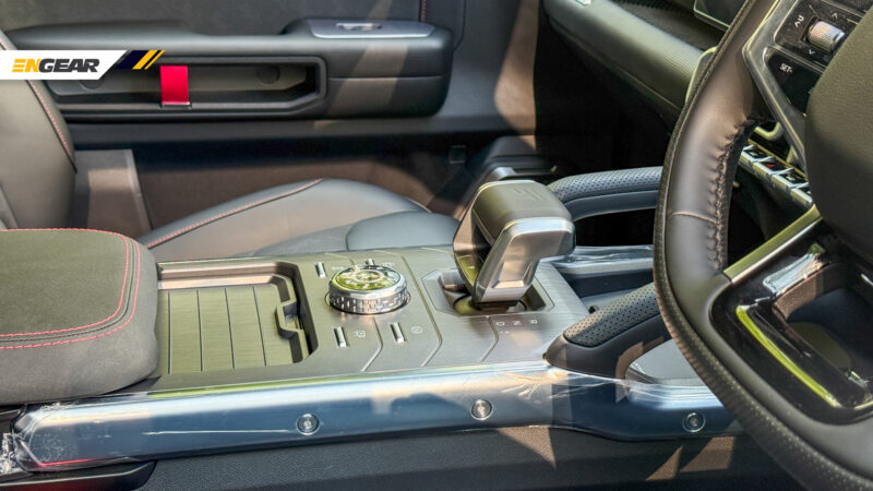 QV-E masih lagi mengekalkan butang-butang fizikal untuk fungsi kawalan pendingin hawa di bahagian bawah corong udara, serta tuil pemilihan mod pemanduan dan tombol rotari PRND pada konsol tengah.