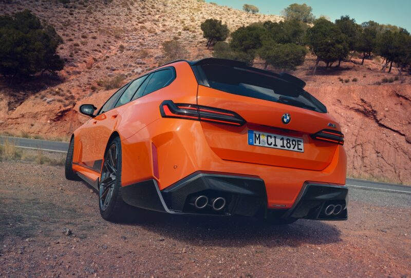 Ia bermula dengan bahagian hadapan, di mana M5 Touring mendapat splitter gentian karbon yang membuatkan bampar kelihatan lebih menonjol.