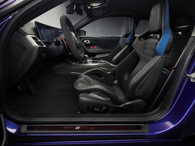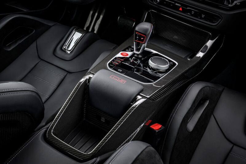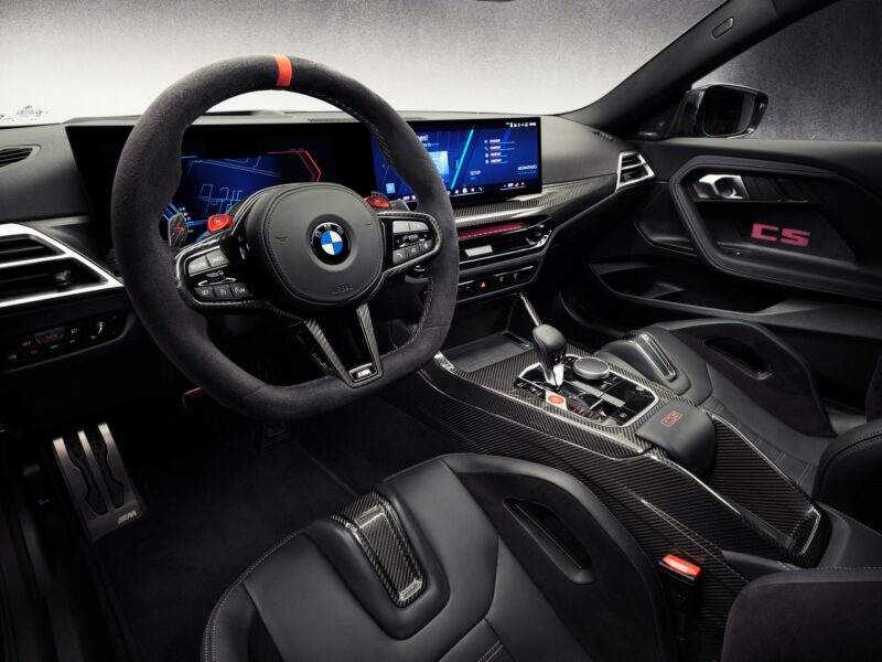 Bahagian dalaman pula menampilkan tempat duduk bucket karbon M, kulit Merino dan kemasan Alcantara, konsol tengah CFRP, serta paparan digital melengkung BMW dengan sistem Operasi 8.5.