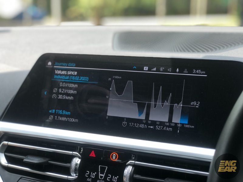 Ini kerana jika baterinya habis, 330e M Sport ini ibarat ‘menggalas’ beban lebih yang sia-sia kerana dengan berat sekitar 1,740kg, kereta ini adalah hampir 300kg lebih berat berbanding 330i.