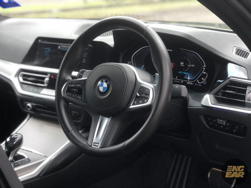 Paling ketara mengenai BMW 3-Series generasi G20 ini ialah sterengnya yang kekal tajam, responsif dan tepat walaupun menggunakan sistem baharu. Stereng serta posisi memandunya yang sporti menyumbang kepada kepuasan pemanduan untuk kereta ini.