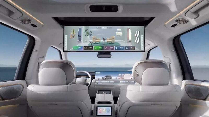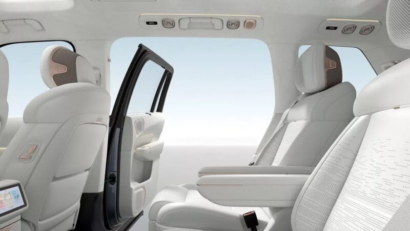 Untuk penumpang baris kedua disediakan skrin kecil pada konsol tengah, dan skrin paparan 6K sebesar 30 inci yang boleh disembunyikan pada bahagian alas bumbung.