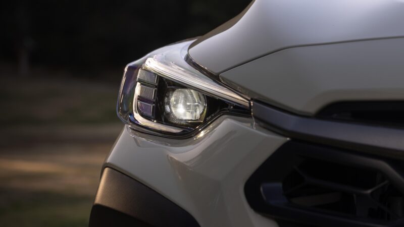 Di bahagian hadapan, Lexus LBX menampilkan struktur jeriji spindle tanpa rangka yang lebih aerodinamik, serta unit lampu projektor tunggal dengan fungsi Auto High Beam yang mengintegrasikan lampu membelok berserta lampu nyalaan siang DRL LED.