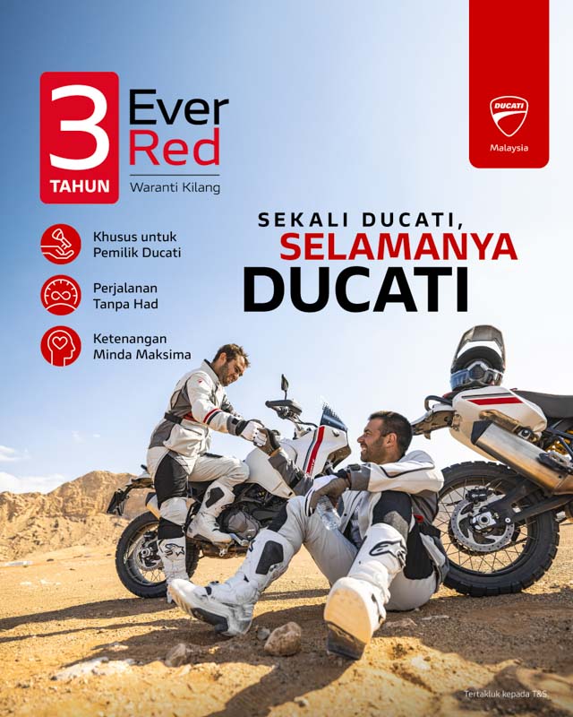 Ducati Malaysia umum Waranti Kilang 3 Tahun Ever Red