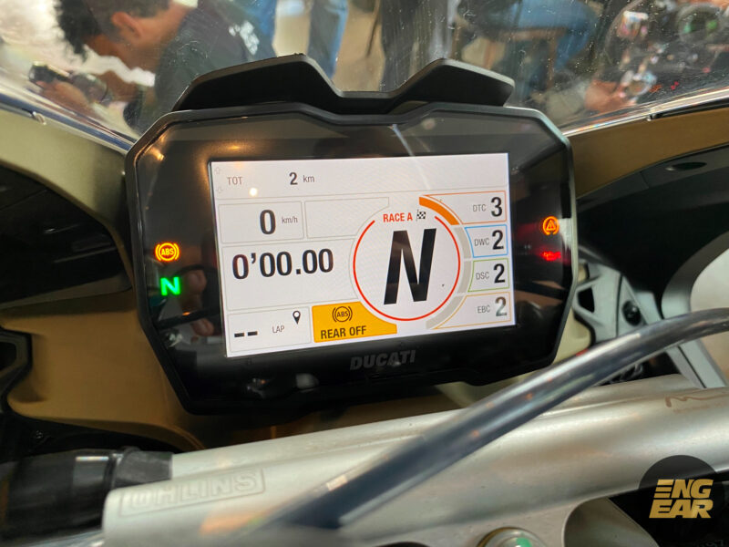 Turut disertakan adalah ciri-ciri seperti Engine Brake Control (EBC), Ducati Traction Control (DTC), Ducati Wheelie Control (DWC), Ducati Quick Shift (DQS) Up & Down dan juga ABS Cornering.