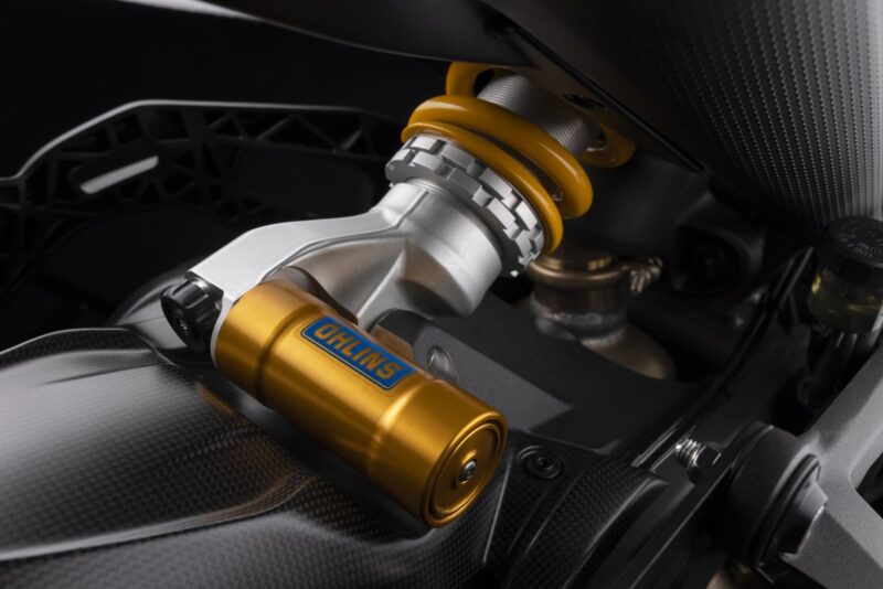 Untuk suspensi, Panigale V4 SP2 menggunakan gabungan fork Öhlins NPX25/30 dan penyerap hentak Öhlins Smart EC 2.0 yang kedua-duanya boleh dikawal secara elektronik.