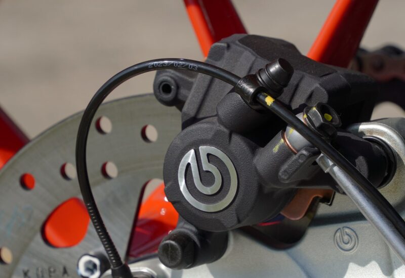 Kuasa membrek pula dibekalkan oleh cakera tunggal 330 mm dan angkup Brembo M4.32 di hadapan, dan cakera tunggal 245 mm dengan angkup piston tunggal di belakang.