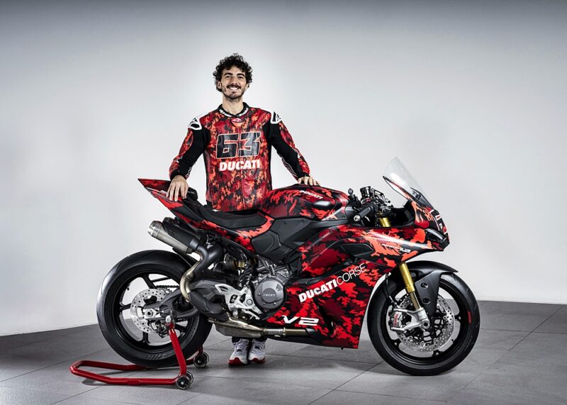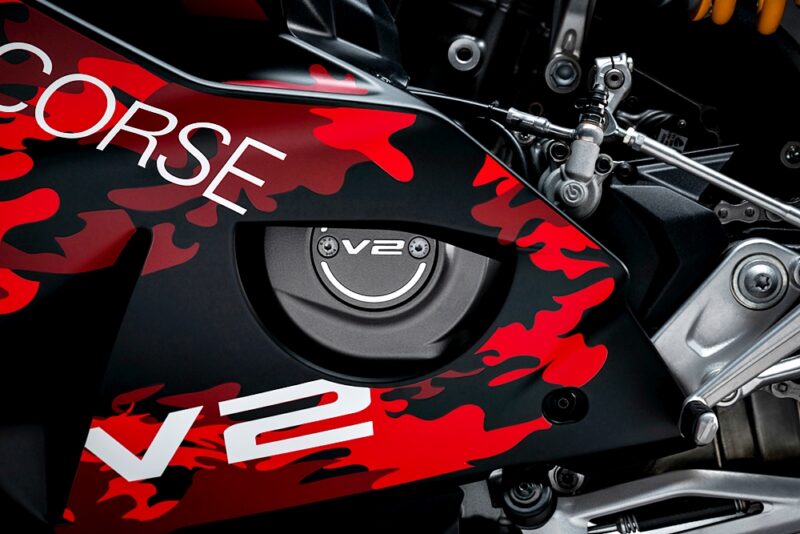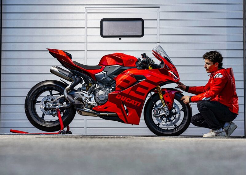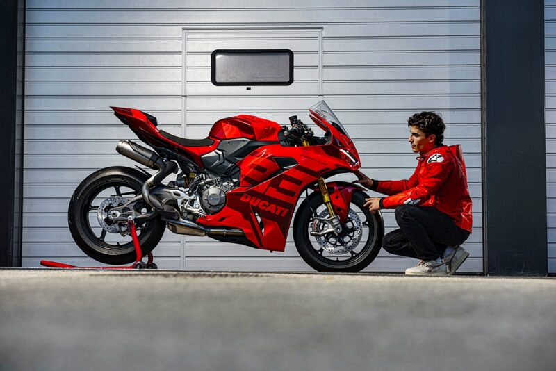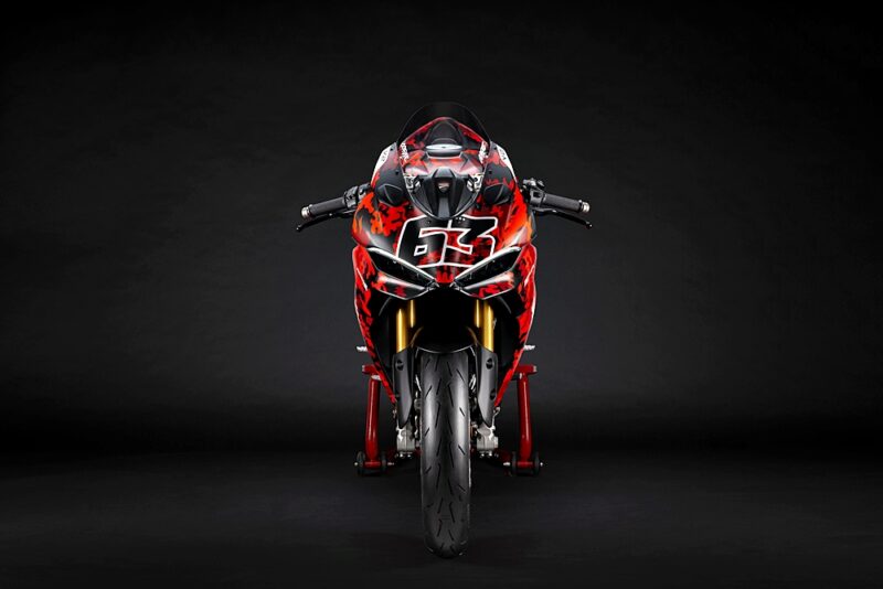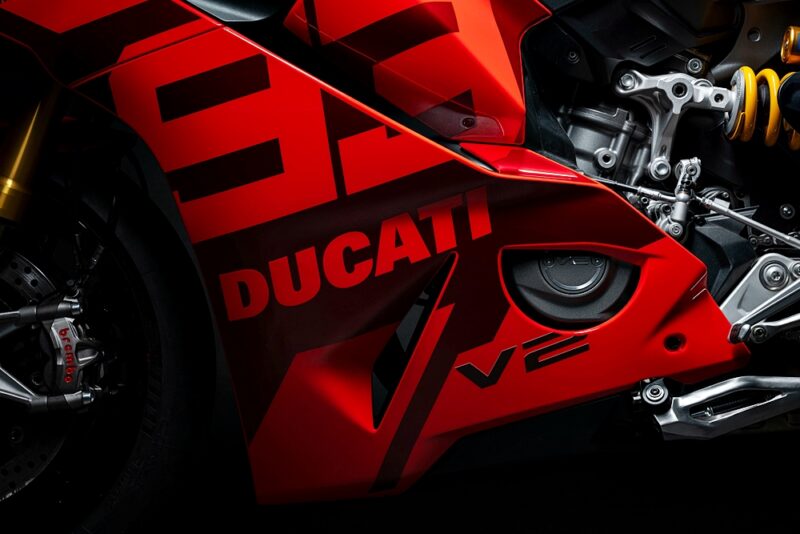 Motosikal unik ini didedikasikan kepada pelumba pasukan Lenovo 2025, Marc Márquez (MM93) dan Francesco Bagnaia (FB63), dengan corak warna eksklusif dan penalaan litar khusus bagi meningkatkan ciri dinamik Panigale V2 S.