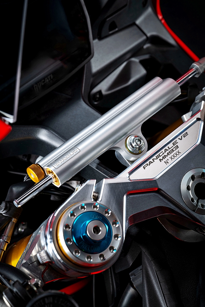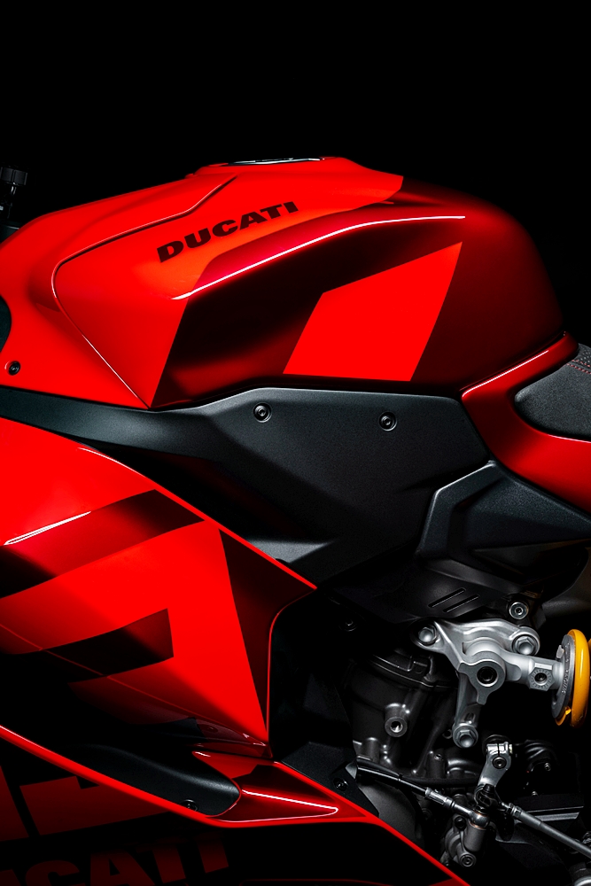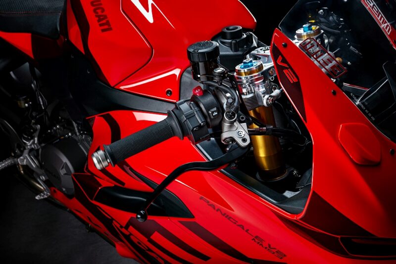 - Standard: Ducati Quick Shift (DQS) naik/turun 2.0, suspensi Öhlins, bateri Litium-ion, butang pelarasan pantas, peredam stereng Öhlins, roda aluminium tempa, Coming Home, konfigurasi tempat duduk tunggal, Ducati Power Launch (DPL), paparan warna TFT, sistem lampu LED penuh, Lampu Nyalaan Siang (DRL), lampu isyarat pembatalan sendiri, Lap Timer, Pit Limiter.
