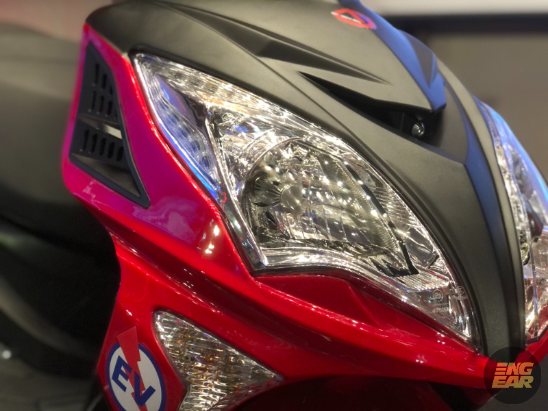 Pertamanya, gril depan rata yang bertutup, kemudian tulisan “RECHARGE” pada tiang-C kiri dan kanan, serta tempat mengecaj pada fender depan kiri.