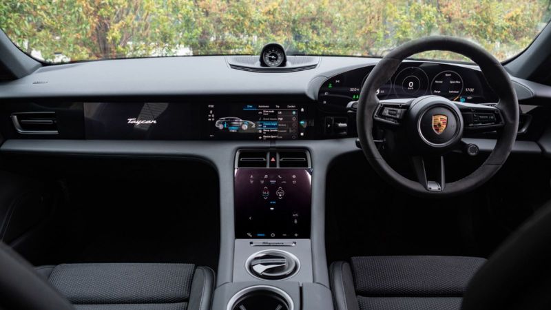 Rekaan kabinnya hampir serupa dengan Taycan sedan, iaitu bahagian atas berbentuk sayap serta paparan infotainment 10.9-inci di tengah. Terdapat juga kompas di atas papan pemuka dari pakej Off-Road Design.