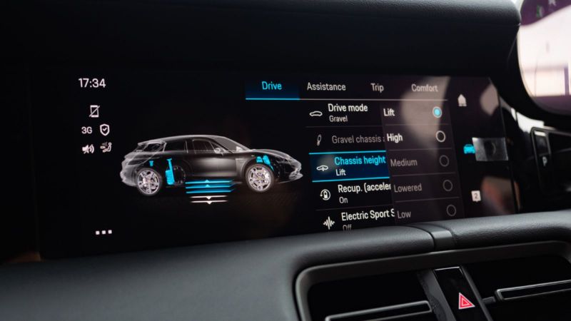 Baharu pada Taycan Cross Turismo ialah mod pemanduan Gravel, dimana ia menambah ketinggian kereta sebanyak 30mm untuk pemanduan di jalan tidak rata.