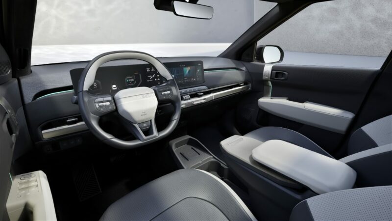 Rekaan kabin menampilkan konsep minimalis. Terdapat corong pendingin hawa tunggal yang direka melintang, membahagikan papan pemuka kepada dua bahagian. Terdapat beberapa butang fizikal di konsol tengah.