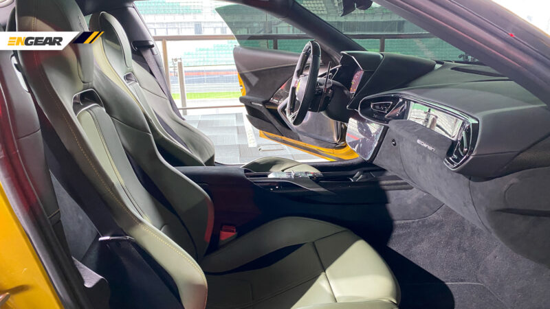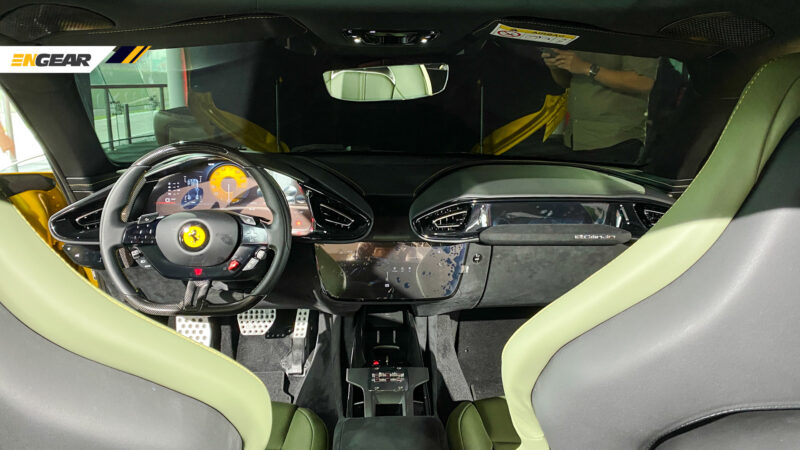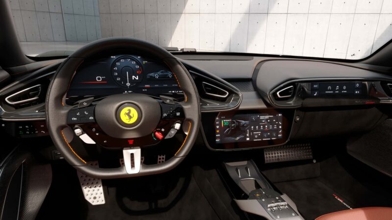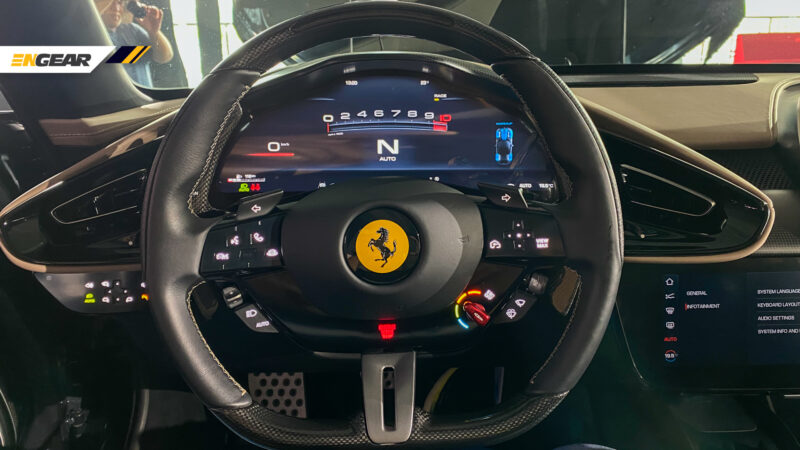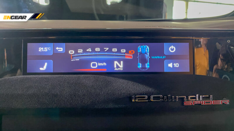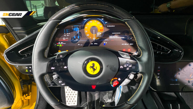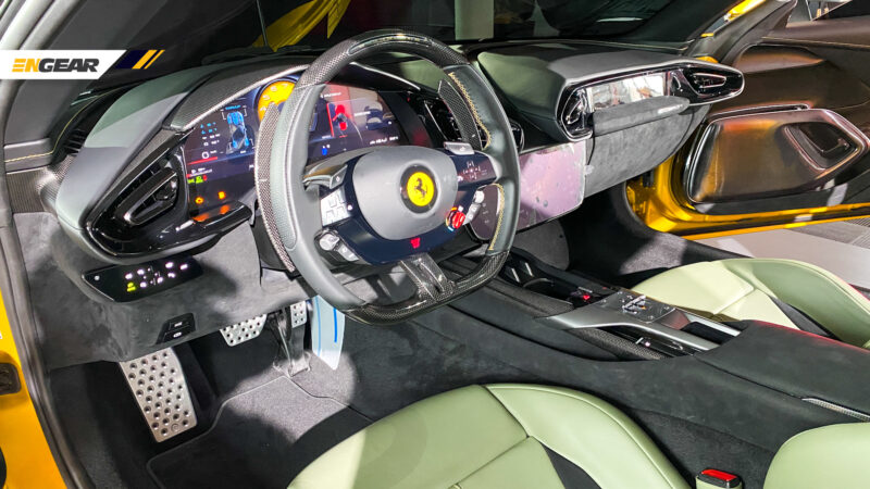 Roda stereng dipinjamkan daripada model 296 GTB yang lengkap dengan butang kawalan kapasitif.