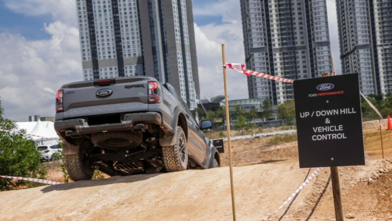 Anda akan berpeluang memandu uji Ranger Raptor dengan enjin 2.0-liter diesel turbo dalam laluan yang disediakan khas. Anda boleh merasai mod pemanduan Baja dan lain-lain latihan 4×4 serta off-road, termasuk selekoh laju di permukaan kasar, mogul, mendaki dan menuruni cerun, dan laluan condong.