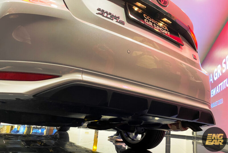 Adakah ini sekadar tepek emblem GR? Tidak juga, lebih dari itu. Toyota Corolla GR Sport ini dilengkapi dengan bampar depan lebih agresif, bampar belakang dengan kemasan diffuser, tulisan-tulisan GR di merata badan luar dan dalam, dan grafik meter baharu yang lebih sporti.