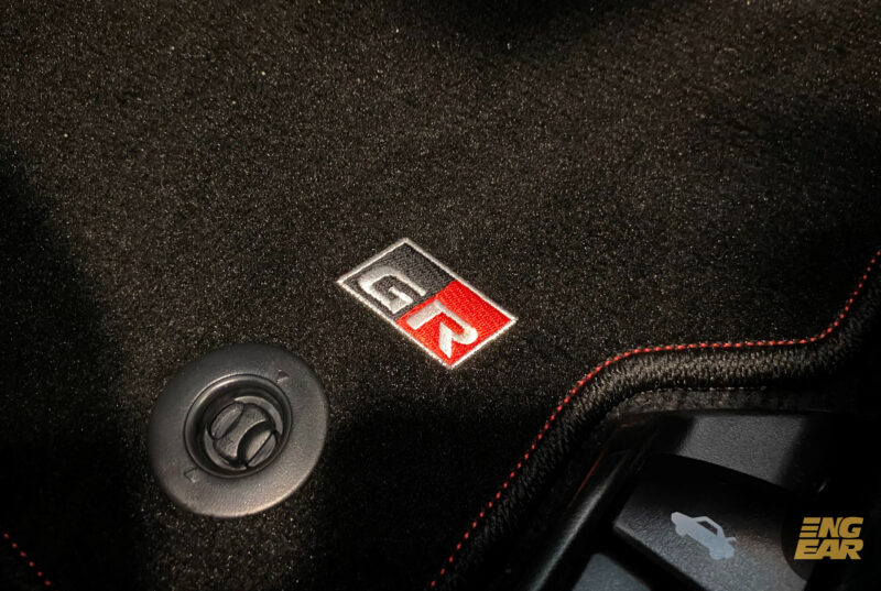 Pedal kakinya dengan stainless steel dan getah kecil ‘mengajak’ anda memandu sambil memakai kasut sesuai. Kemudian sterengnya ringkas, dengan logo GR, ditambah dengan tempat duduk sports yang kemas memegang anda untuk semua situasi, tetapi tetap selesa.