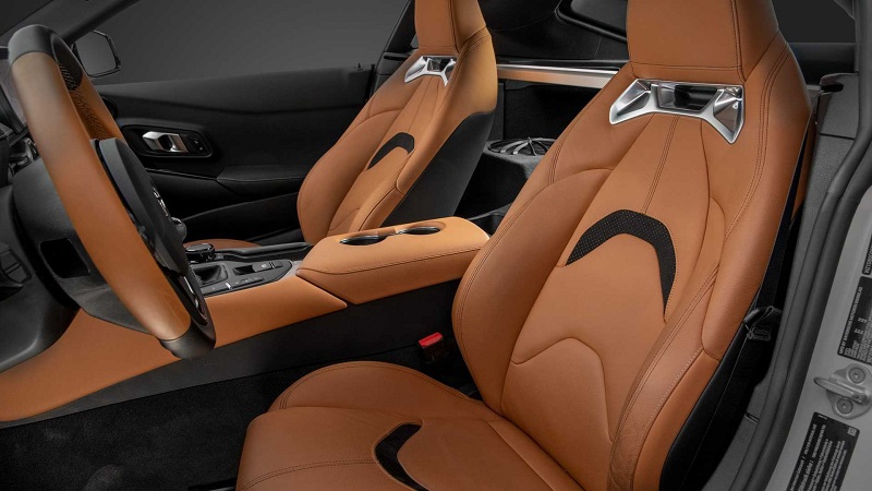 Di dalam, tempat duduk sport pada bahagian depan kini dibalut upholsteri berwarna kelabu dengan jahitan kontras merah, yang turut diaplikasikan pada stereng dan tuil gear. Sebagai alternatif, pelanggan boleh menaikkan seri kabin dengan memilih upholsteri Ultrasuede hitam yang ditawarkan sebagai opsyen.