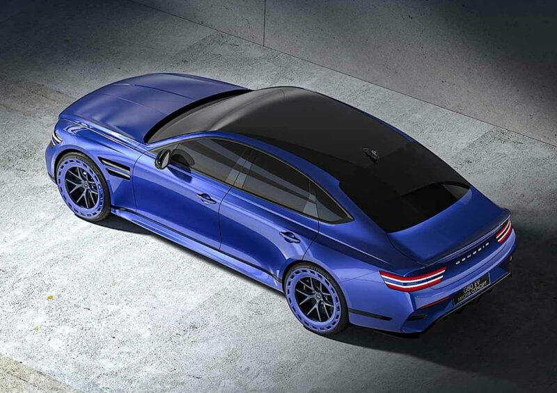 Bahagian bumbung dilengkapi rongga kemasukan udara yang berfungsi sepenuhnya sementara identiti reka bentuk Two Line Genesis disepadukan pada lampu hadapan dan belakang.