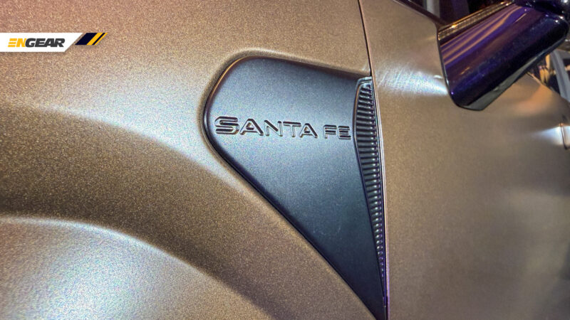 Ciri luaran Santa Fe termasuklah rekaan lampu LED dengan grafik H depan dan belakang, kemasan krom gelap pada jeriji radiator, serta penyeka kaca belakang tersembunyi.