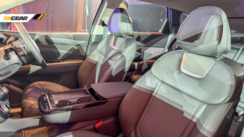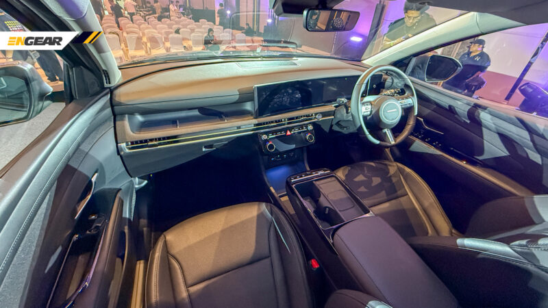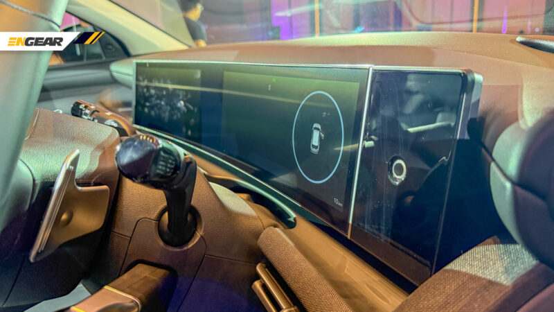 Bahagian dalaman menampilkan paparan digital melengkung 12.3 inci, pemilih gear elektronik jenis tuil di stereng, pengesahan cap jari, dan rekaan konsol terapung. Panel kawalan penyaman udara digital bersaiz 6.6 inci serta ruang simpanan praktikal turut disertakan.