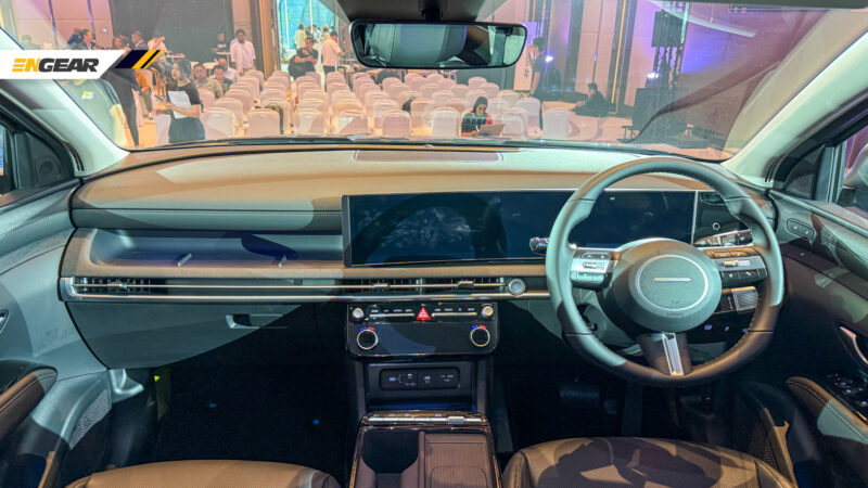 Tucson 2025 facelift kini membawakan papan pemuka yang lebih kemas, dengan skrin berkembar 12.3 inci dalam satu panel melengkung, roda stereng tiga jejari tanpa logo H italik, serta panel 6.6 inci berasingan untuk kawalan iklim.