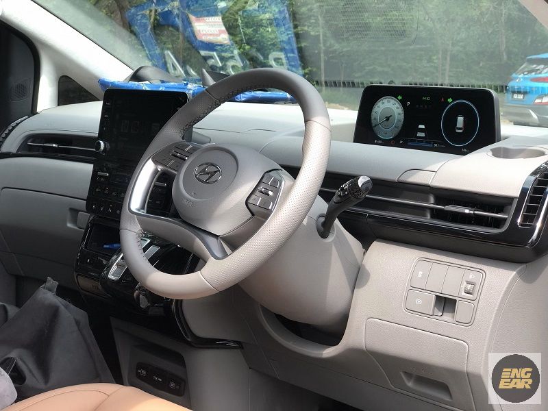 Bergantung kepada varian, Staria juga turut dilengkapi dengan ciri seperti bumbung kaca panorama berkembar, tempat duduk Premium Relaxation, kawalan iklim automatik, skrin sentuh 8 inci, sistem audio Bose dengan 12 pembesar suara, dan ruang kargo sebesar 431 liter.