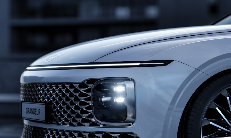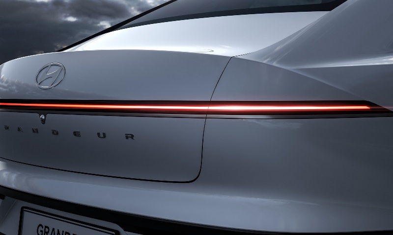 Sekali imbas, Grandeur mempunyai wajah mirip Staria, dengan gril Parametric Jewel dan bar lampu LED melintang yang digelar sebagai Seamless Horizon. Menurut Hyundai, elemen yang diinspirasikan oleh cahaya fajar ini menyerlahkan lagi kelebaran Grandeur.