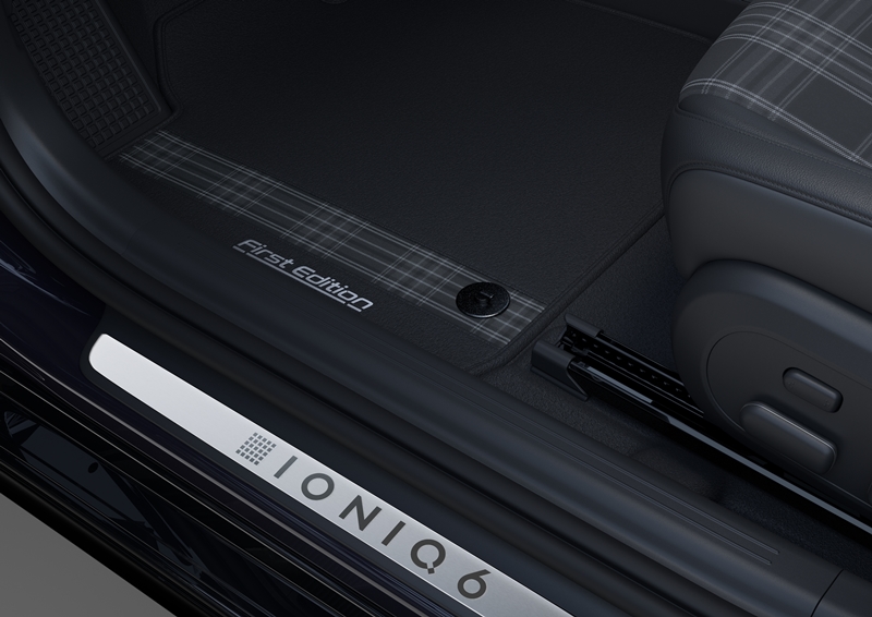 Bagi membezakannya dengan model standard, Ioniq 6 First Edition tampil dengan elemen-elemen eksklusif pada bahagian luaran dan dalaman. Ini termasuk warna hitam matte, rim 20 inci serta logo aluminium hitam pada bampar depan dan belakang.