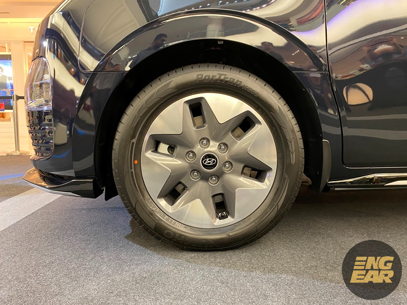 Ruang yang luas pada Staria diperolehi kerana tidak seperti Starex yang menggunakan pacuan roda belakang, Staria menggunakan pacuan roda depan. Jadi, tiada sebarang shaf di bawah kabin, malah suspensi belakang menggunakan multi-link.