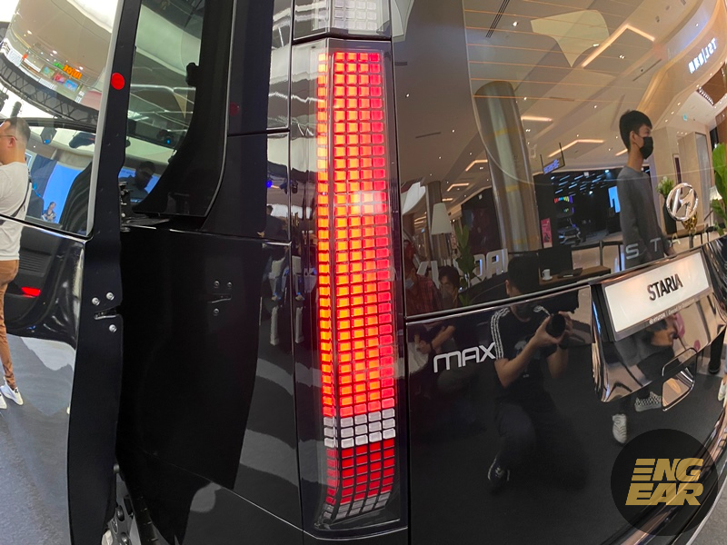 Bagaimanapun, bahagian belakang agak berbeza kerana model ini menggunakan bar lampu menegak dan melintang yang membentuk huruf ‘H’ yang besar.