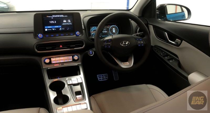 Bahagian dalaman nampak hampir sama dengan Kona biasa secara keseluruhan, tetapi masih terdapat beberapa perbezaan kecil.