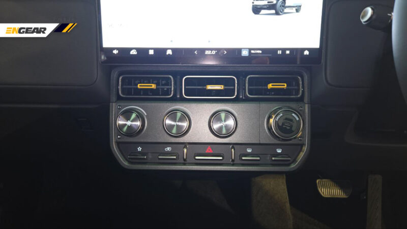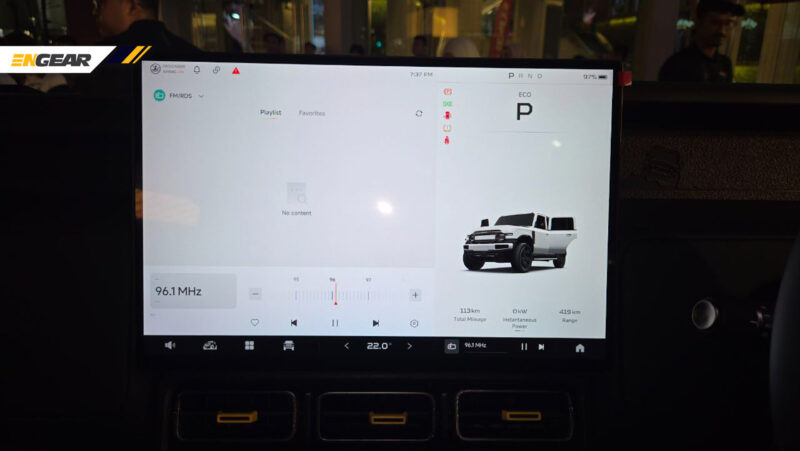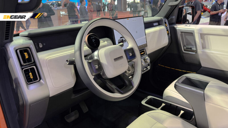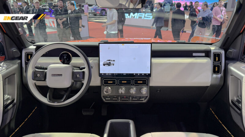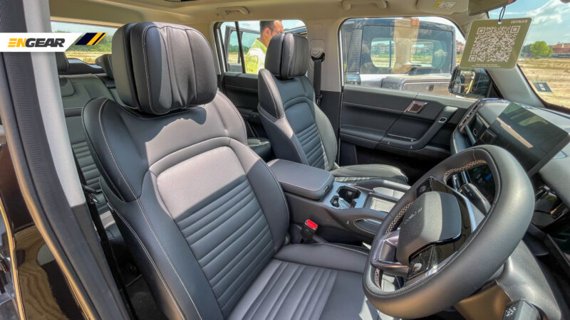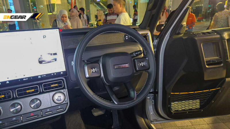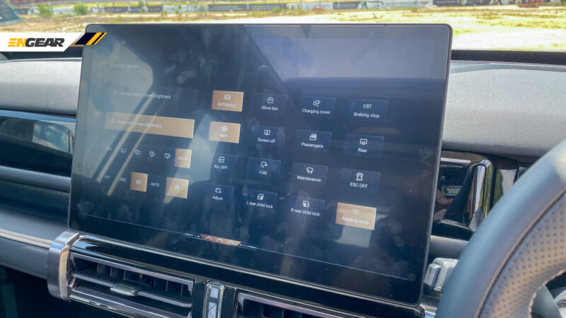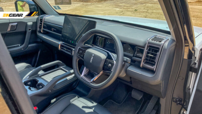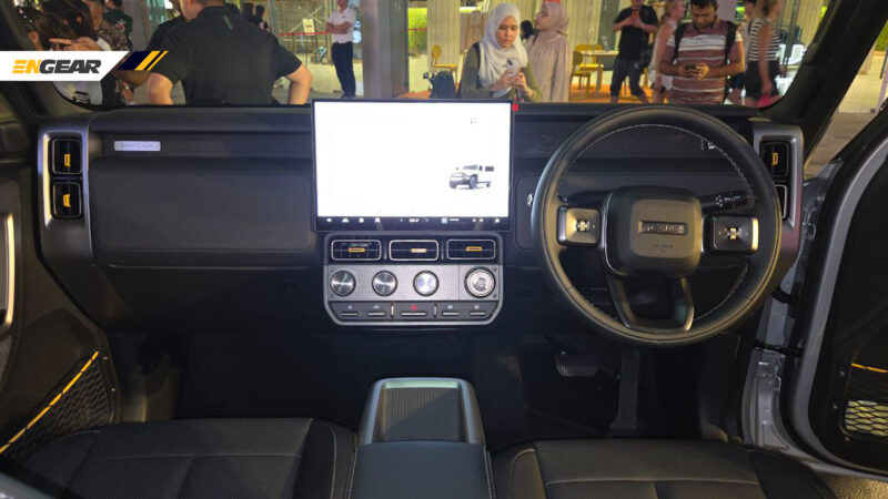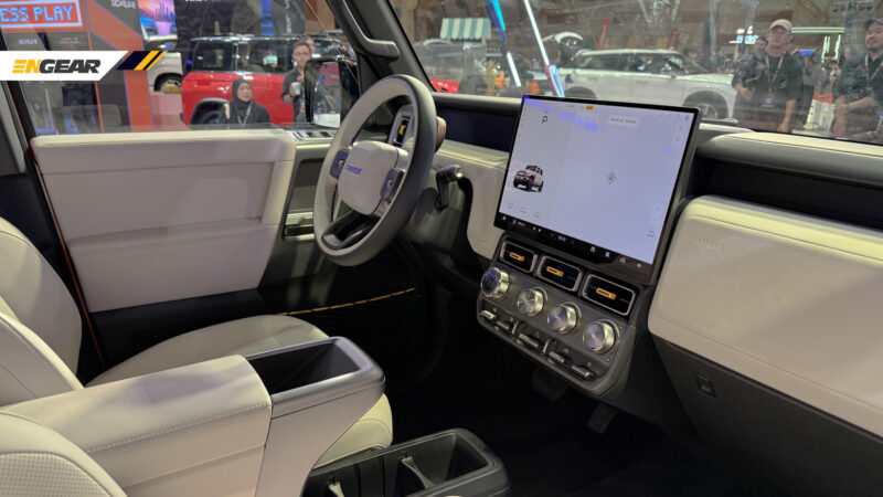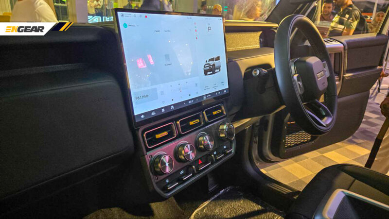 Ia turut dilengkapi dengan skrin paparan sebesar 15.4 inci lengkap dengan sokongan Apple CarPlay dan Android Auto, sokongan kamera casis lutsinar 540 darjah, serta tombol khas untuk penukaran mod pemanduan.