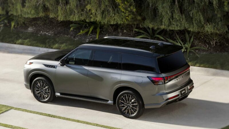 Infiniti menggelar bentuk QX80 ini sebagai “anti wedge” kerana rekaannya yang menegak dengan garisan lurus. Malah, hud depannya juga hampir rata. QX80 juga dilengkapi dengan gril double-arch, kemasan hitam, pilihan bumbung hitam, dan pembuka pintu jenis retractable.