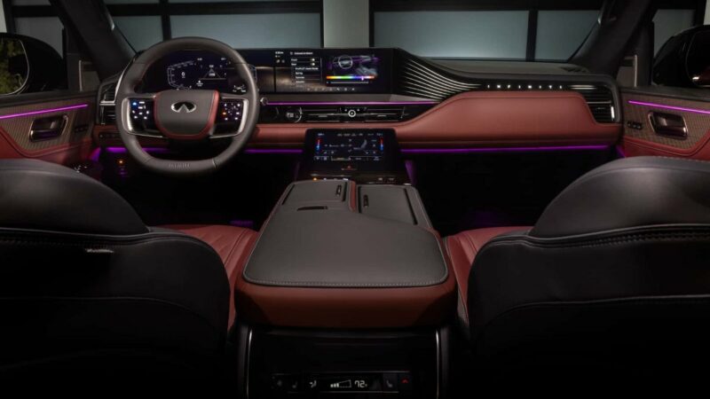 Ciri lain pada QX80 termasuklah Biometric Cooling, tempat duduk dengan fungsi urut, InTouch dengan Google Built-In, sambungan Apple Carplay dan Android Auto, bantuan pemandu ProPilot 2.1, sistem audio 600watt pada varian biasa (Pure, Luxe, Sensory), dan sistem audio Klipsch 1200watt untuk varian Autograph.