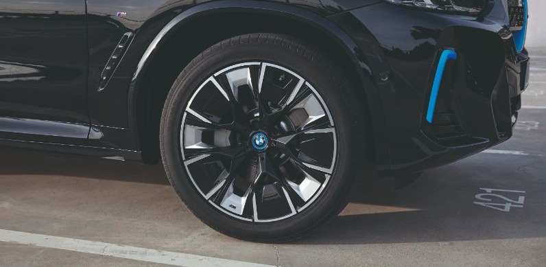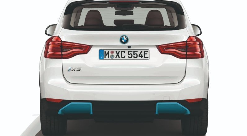 Elemen biru dapat dilihat pada gril bertutup, kemasukan udara di bampar depan, dan diffuser belakang. Tetapi elemen sporti mendominasi rekaan luar iX3 M Sport ini, seperti rim 20-inci, bampar sisi yang agresif, dan rekaan diffuser belakang yang menyerlah, selain spoiler bumbung.