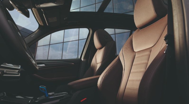 Upholsteri dalaman pula boleh didapati sama ada dalam Leather Vernasca Mocha dengan jahitan Décor atau Leather Vernasca Black dengan jahitan kontras biru.