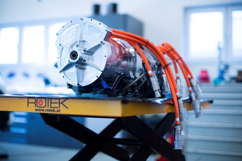 Bekalan tenaga untuk motor-motor elektrik tersebut datang daripada sebuah bateri berkapasiti 50kWh yang dilengkapi dengan teknologi sejukan cecair. Pek bateri itu diletakkan di tengah-tengah casis bagi tujuan mendapatkan pengagihan berat yang optimum dan merendahkan pusat graviti.