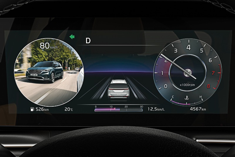Di bahagian dalam, Kia Carnival dilengkapi skrin infotainmen 12.3-inci dengan Apple CarPlay dan Android Auto, manakala untuk pemandu, kluster instrumen dengan skrin 4.2-inci. Tujuh soket USB dan sambungan Bluetooth juga adalah standard.