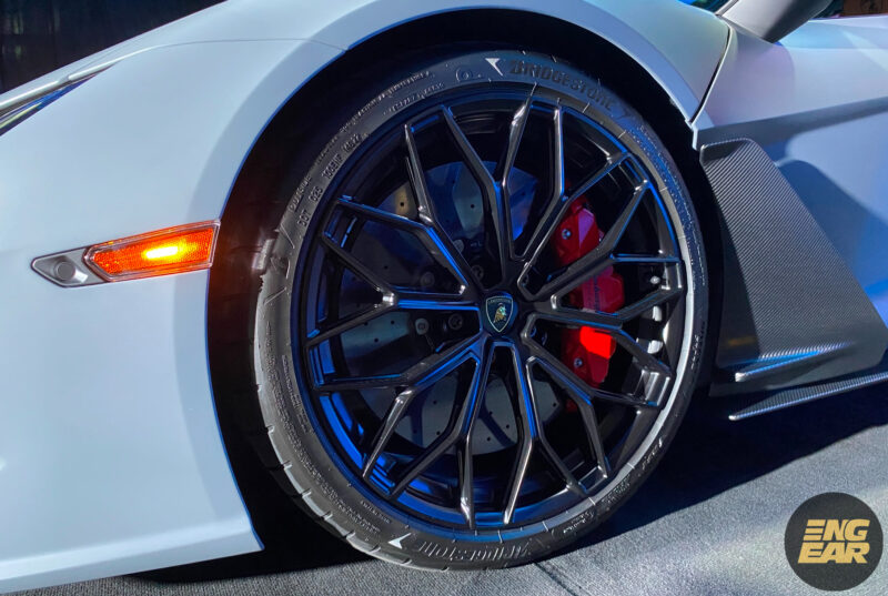 Untuk tayar, Lamborghini memilih tayar Bridgestone Potenza Sport yang dibangunkan khusus untuk model ini. Ia boleh didapati dalam saiz 265/35 ZRF20 di hadapan dan 345/30 ZRF21 di belakang, atau 265/30 ZRF21 di hadapan dan 355/25 ZRF22 di belakang.