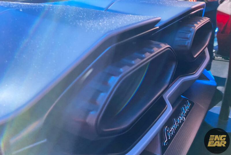 Menggandingkan ekzos Lamborghini Huracán Tecnica dengan jeriji heksagon untuk audio berkualiti tinggi.