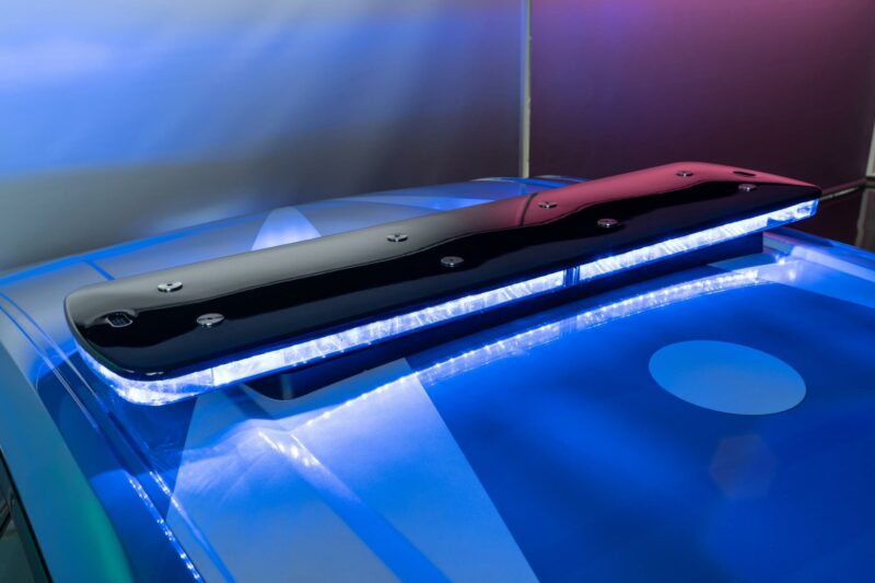 Selain itu, ia juga didatangkan dengan logo polis yang dibalut filem pantulan cahaya, bar lampu LED biru 360 darjah di atas bumbung dan siren elektrik dua nada.