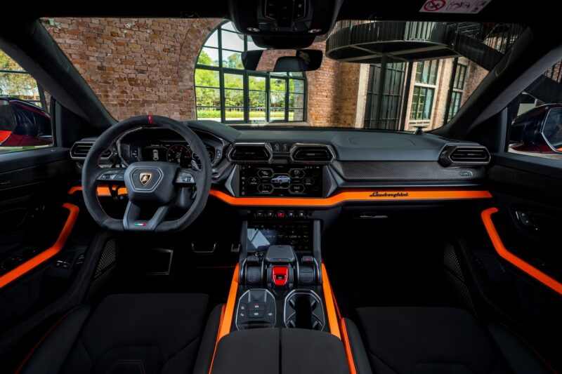 Penumpang juga mendapat paparan sendiri sebesar 9.1-inci, dimana Lamborghini mengatakan boleh menggalas tugas sebagai co-pilot bagi pemandu. Fungsi seperti pendingin hawa, navigasi, dan muzik boleh dikawal penumpang, maka pemandu boleh fokus kepada pemanduan.